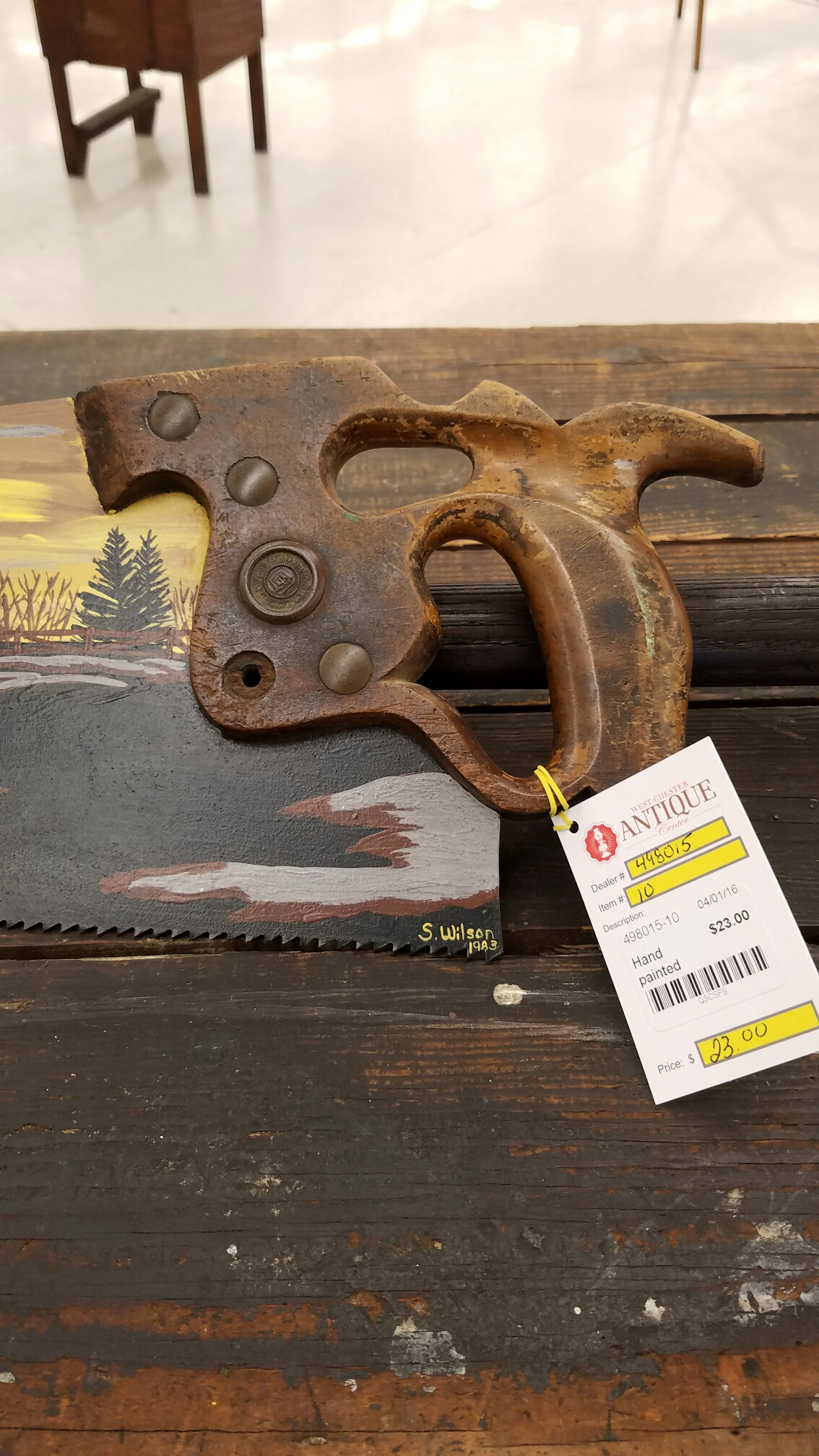 UPDATE: I went back today and the saw was gone. Somebody either got a nice saw for a reasonable price, or they got something to hang over their fireplace. Haha.