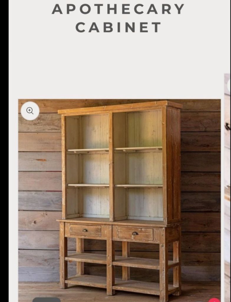 Anita got two new booths in the antique mall she sells in. She went from having a small 8′ x 10′ L shaped booth to having two big rooms. Because of this, she needed a big display cabinet for the back wall in one of her rooms. She searched the internet and asked me if I could make this apothecary cabinet for her.