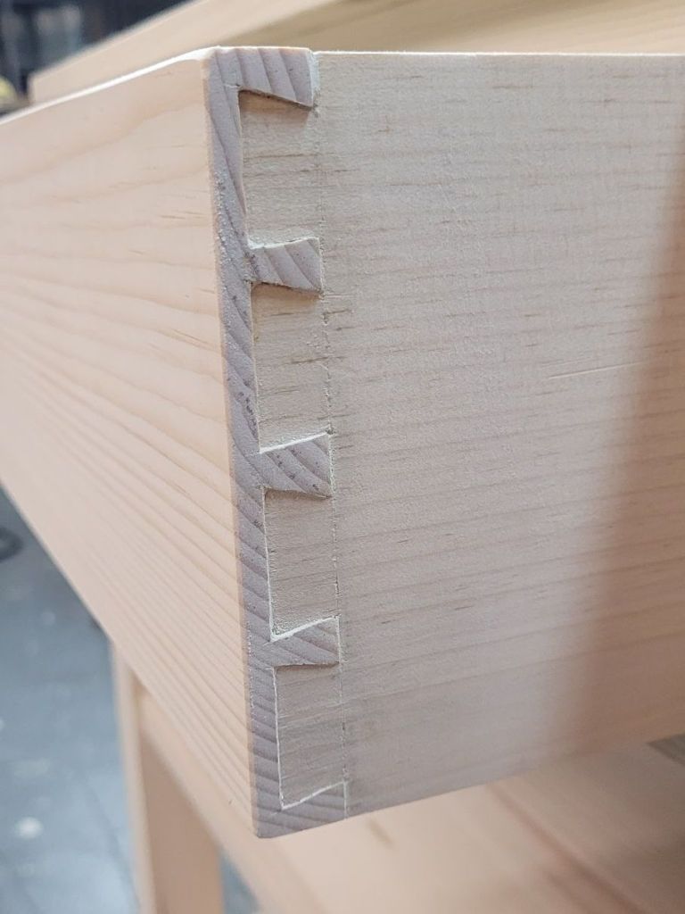 I wanted robust drawers so I made those with handcut half blind dovetails. It’s a lot of fun cutting dovetails by hand and it really doesn’t take too long once you get the hang of it.