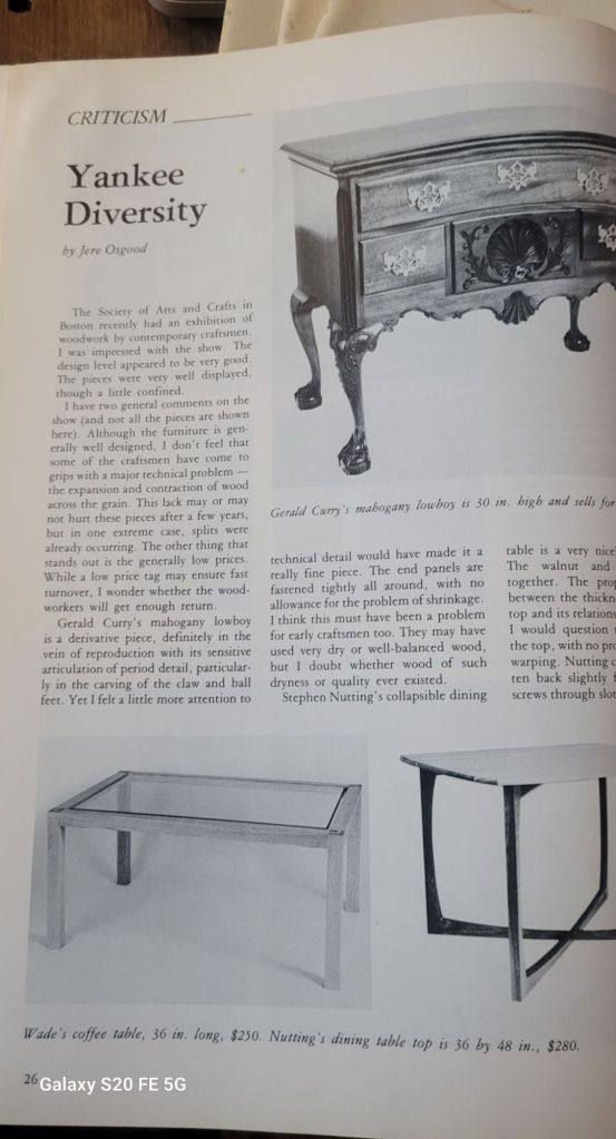 Along with Frid, there are articles by James Krenov, Jere Osgood, and Bruce Hoadley. A basic who’s-who of 20th century woodworkers.