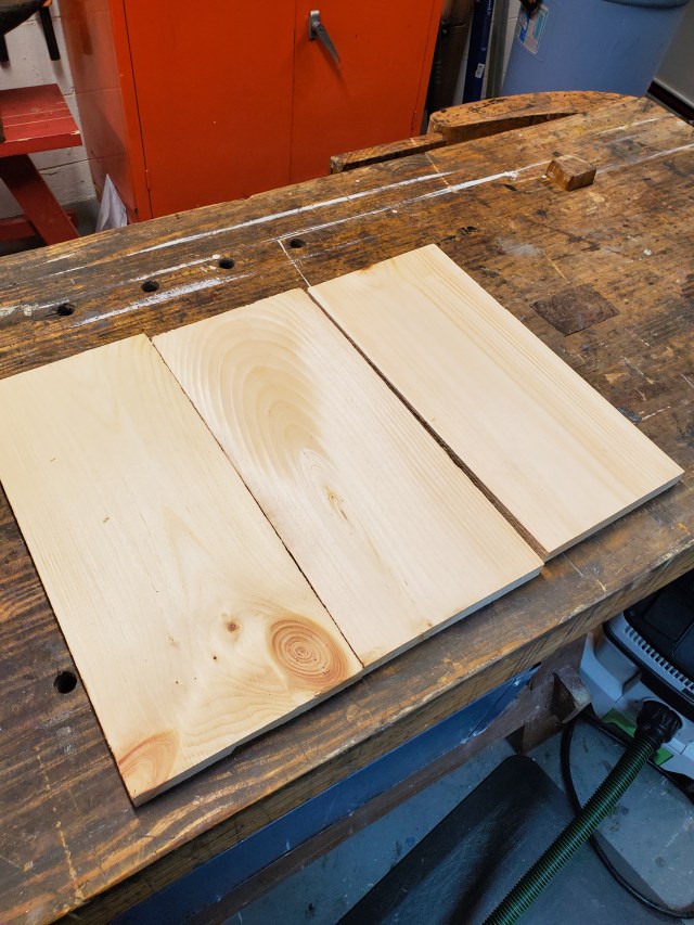 Two of the 2 x 12’s I bought, I planed down to 1″ with my surface planer. It did a fine job, but I had three garbage cans full of shavings that I had to burn in my fire pit in order to get rid of.