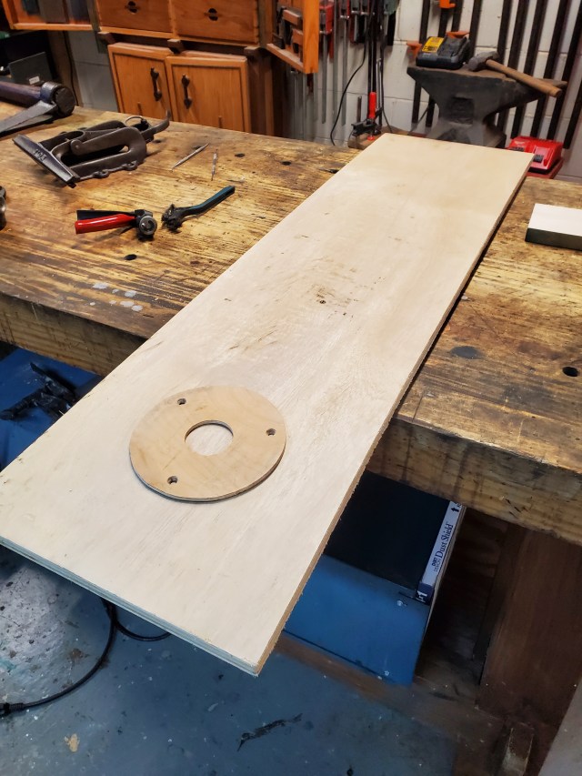 As the base was setting up, I turned my attention to the top. I glued up several white oak boards together and flattened them with my hand planes because the panel was too wide to fit through planer.