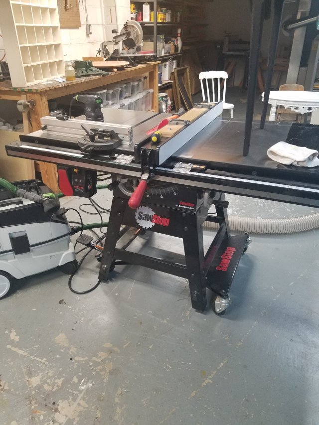 In the middle of the shop is my SawStop table saw. I have no complaints about the saw. I tripped it three times. Twice was from the blade hitting my aluminum miter gauge. The third time it was the tip of my thumb. I was ripping thin strips of wood and every time I ripped the stock to make a strip, my left hand got closer to the blade. Like a dumb ass I didn’t notice the position of my thumb until it was too late. Luckily, it tripped and the tip of my thumb was spared. I sent the tripped cartridge back to SawStop and they sent me a free replacement. My thumb just needed a band-aid.