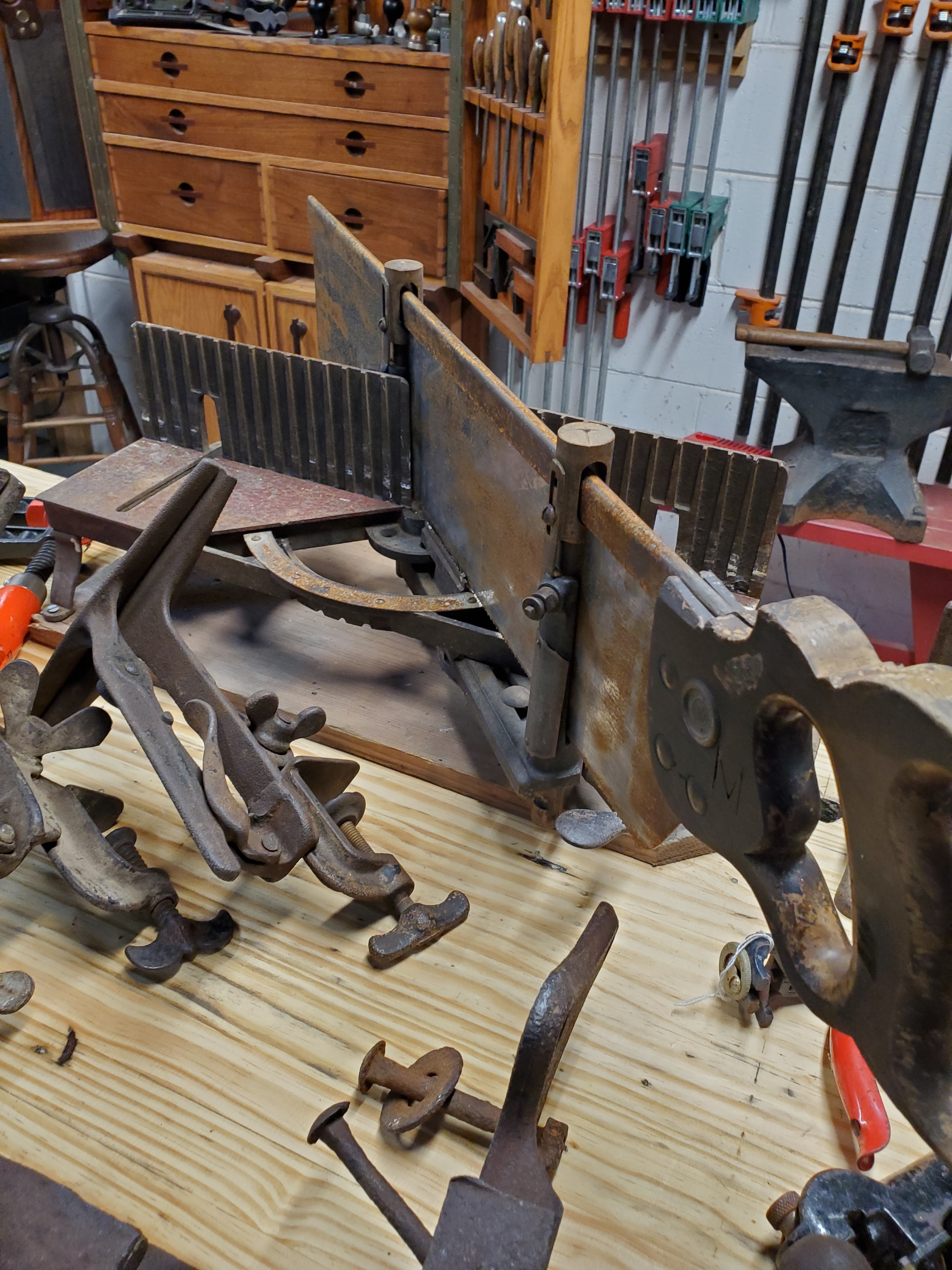 Underneath those is where the planes were. There were only two bench planes but he had a decent collection of molding planes with most stamped J W ROOF.