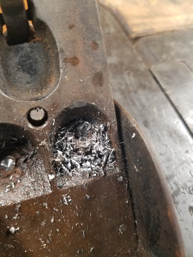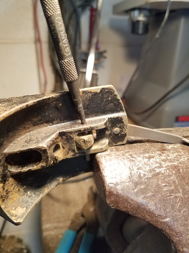 I ended up having to drill through the top of the head to break it apart from the threads so the frog could come free. I’ve read where some people use propane torches to heat up the screws and free the rusted threads that way but, my shop is in my basement and don’t feel like stinking up the whole house with the flames off of a propane torch.