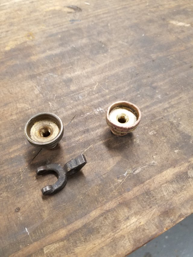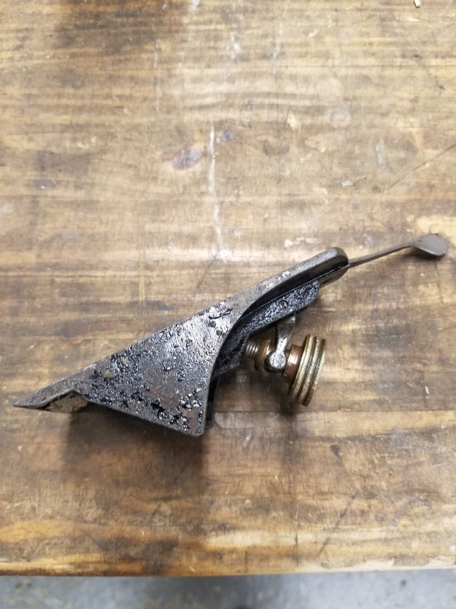 Luckily, I had the proper replacement parts in stock from other planes I couldn’t restore. The yolk and the brass adjustment knob from an old Stanley plane worked as replacements.