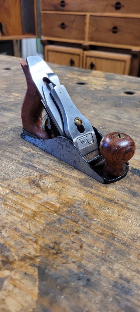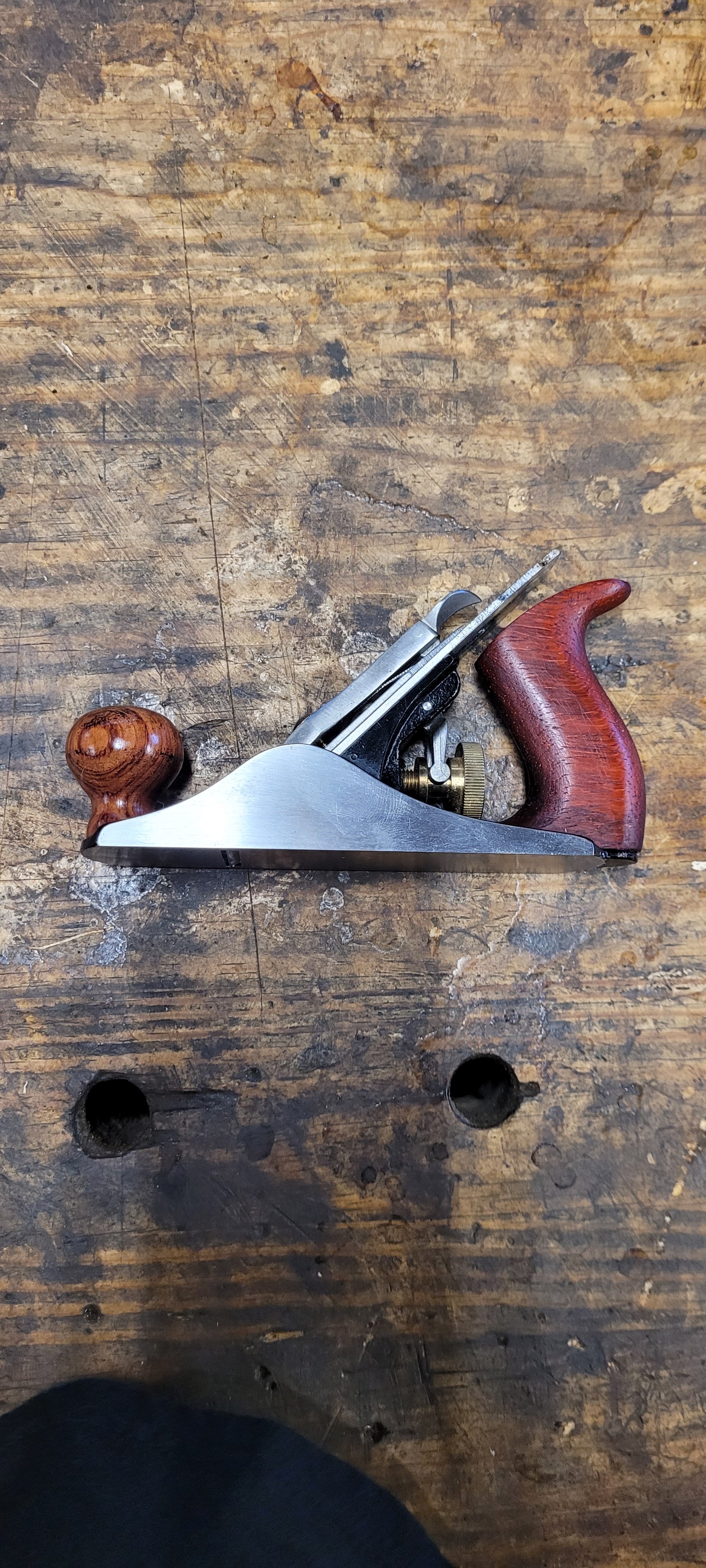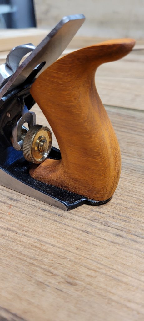 Here’s the plane all cleaned up with a new tote. Looks nice, but I still would like to make Brazialian Rosewood handles someday.