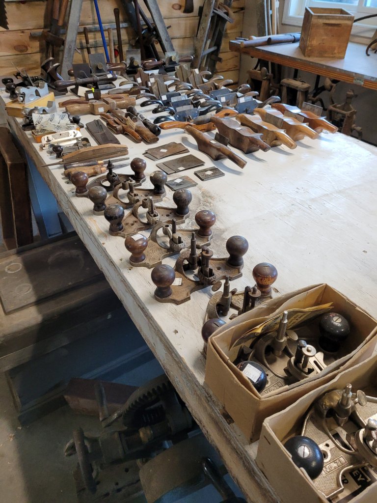 Underneath those is where the planes were. There were only two bench planes but he had a decent collection of molding planes with most stamped J W ROOF.
